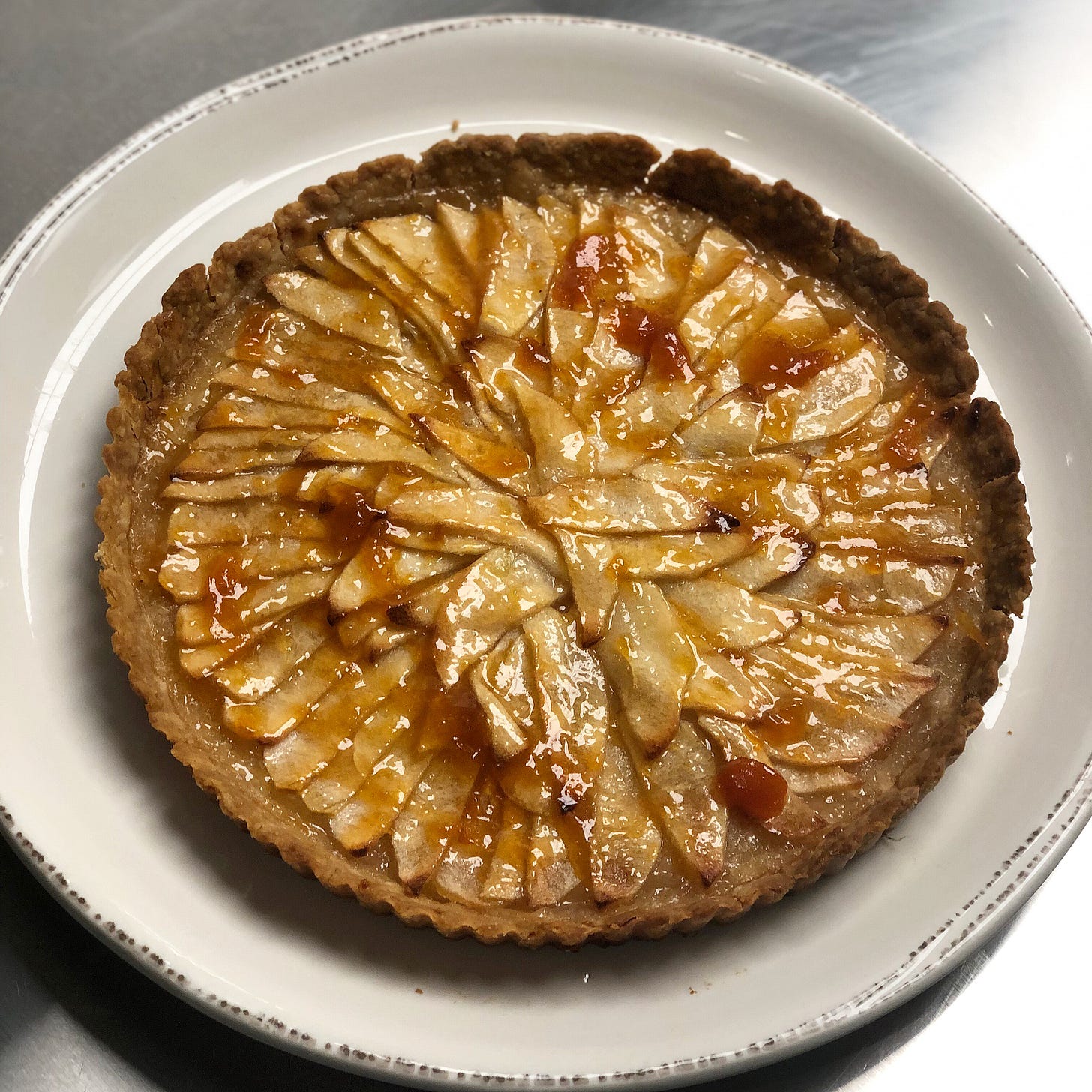 This tart is a French classic. Simple, rustic, and versatile. I like using Granny Smith or a mix of other tart apples, but it works just as well with pears. The apricot jam glaze is traditional, and a touch of Calvados (apple brandy) gives it an extra lift. Serve it on its own, or with crème fraîche or vanilla ice cream.